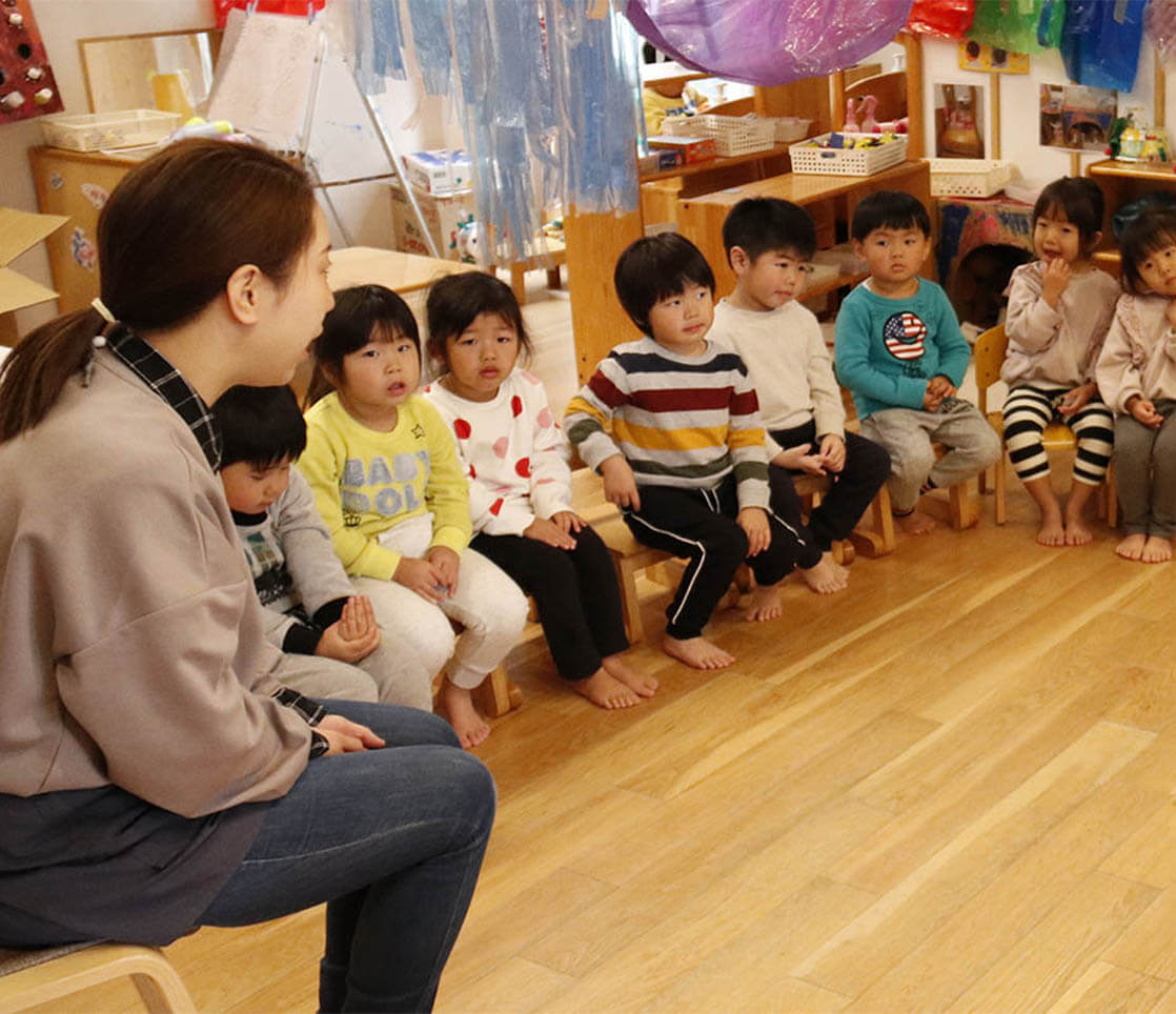 ・檸檬会のつながる保育、コーナー保育、乳児クラス:育児担当保育、幼児クラス:サークルタイムの活動を見てみよう!
